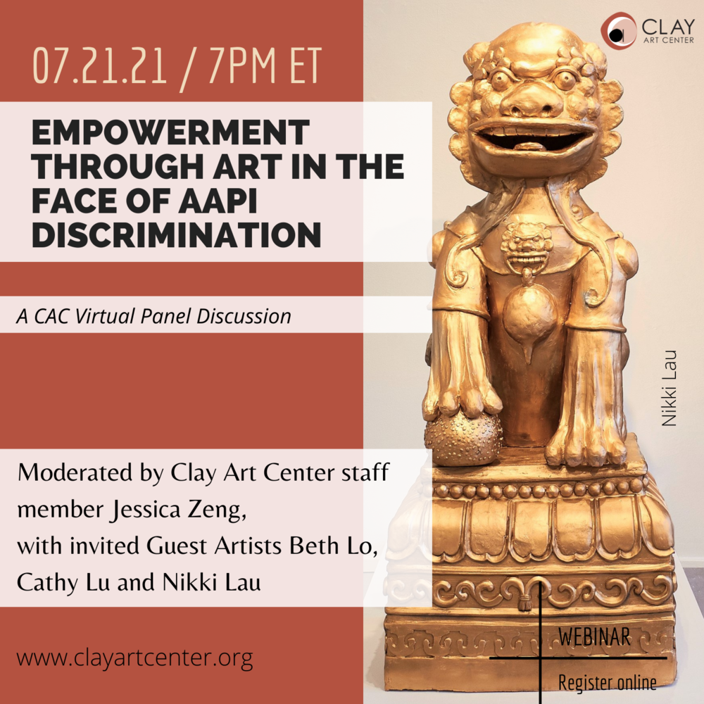 Join guest panelists Beth Lo, Cathy Lu and Nikki Lau whose works explore history, culture, or human nature, so that we may share in a discussion that tries to imagine what kind of art can contribute to healing and empowerment and gives voice to the challenges Asian Americans and Pacific Islanders are facing in the current culture of discrimination.
