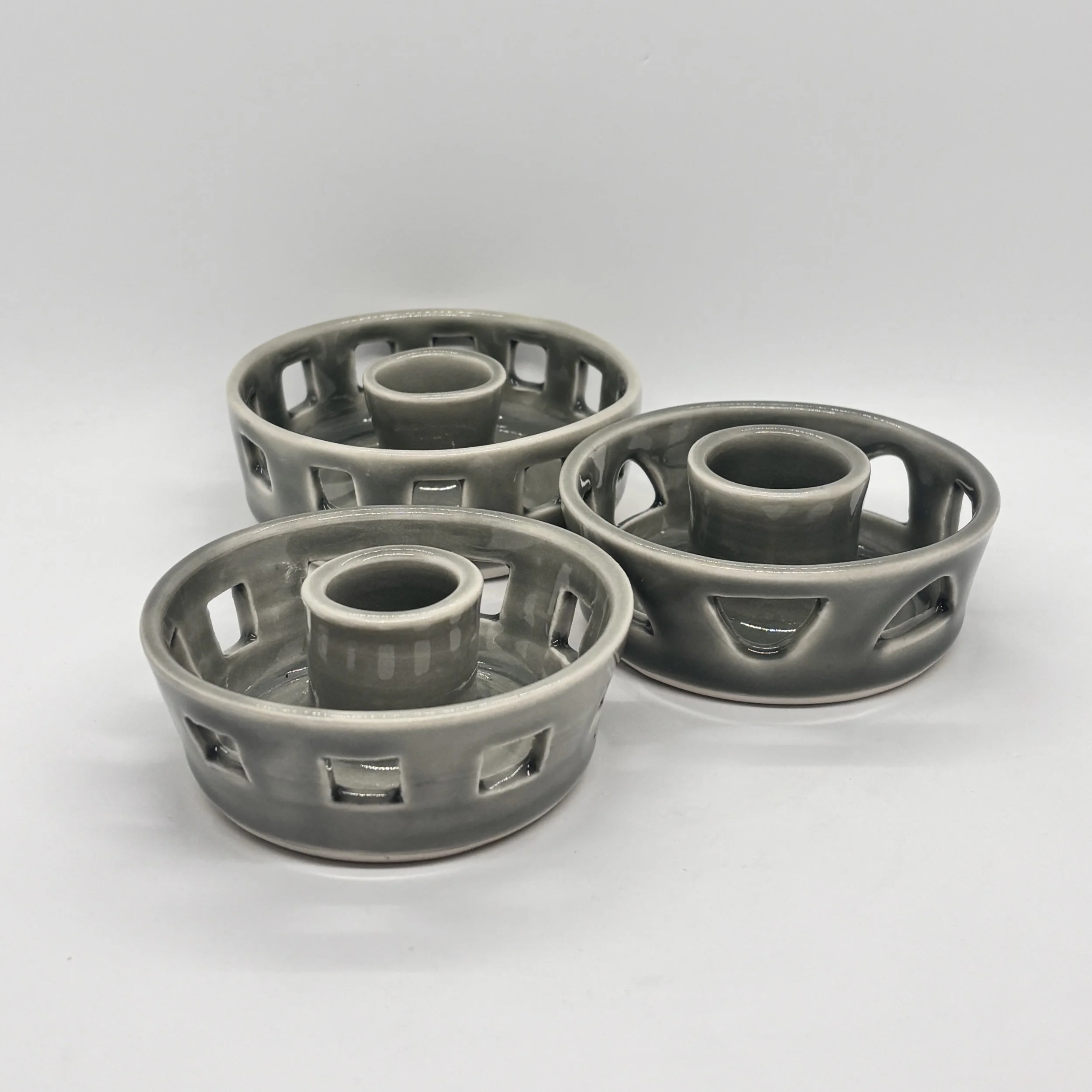 For Artist Sheetal Mehta, inspiration can be found all around her, whether out in nature or in man-made architecture. “There are forms that I find in both that I want to incorporate into my work,” Sheetal notes, “When I bring that vision into the studio, I like to experiment with the materials, the clay as well as the glazes, to implement what I have in mind.” While nature might find its expression in Sheetal’s color palette or speckled clay peeking through the glaze, architectural features define her windowed vessels, with their sharp geometric cutouts. However beautiful the work, it is Sheetal’s hope that the pieces will be used on a regular basis, and not just stored in cabinets for special occasions: “I love when people interact with my pieces and look closely. Sometimes there are layers built into the design, and every time you use them, you might notice different things.” From candleholder sets that let the light shine through, to sturdy planters that bring a little of nature inside during the frosty winter, Sheetal’s functional work will be the pieces you find yourself turning to again and again.