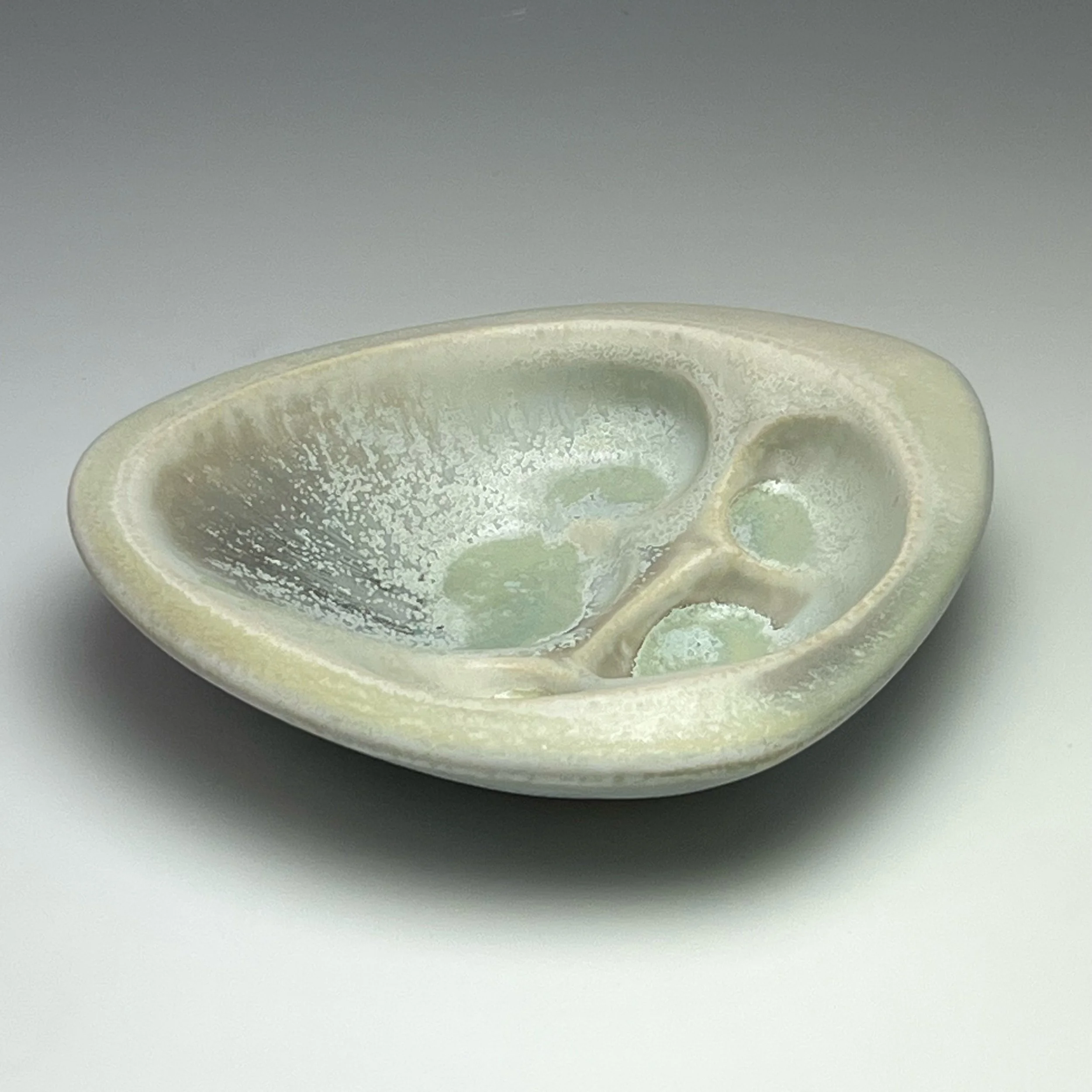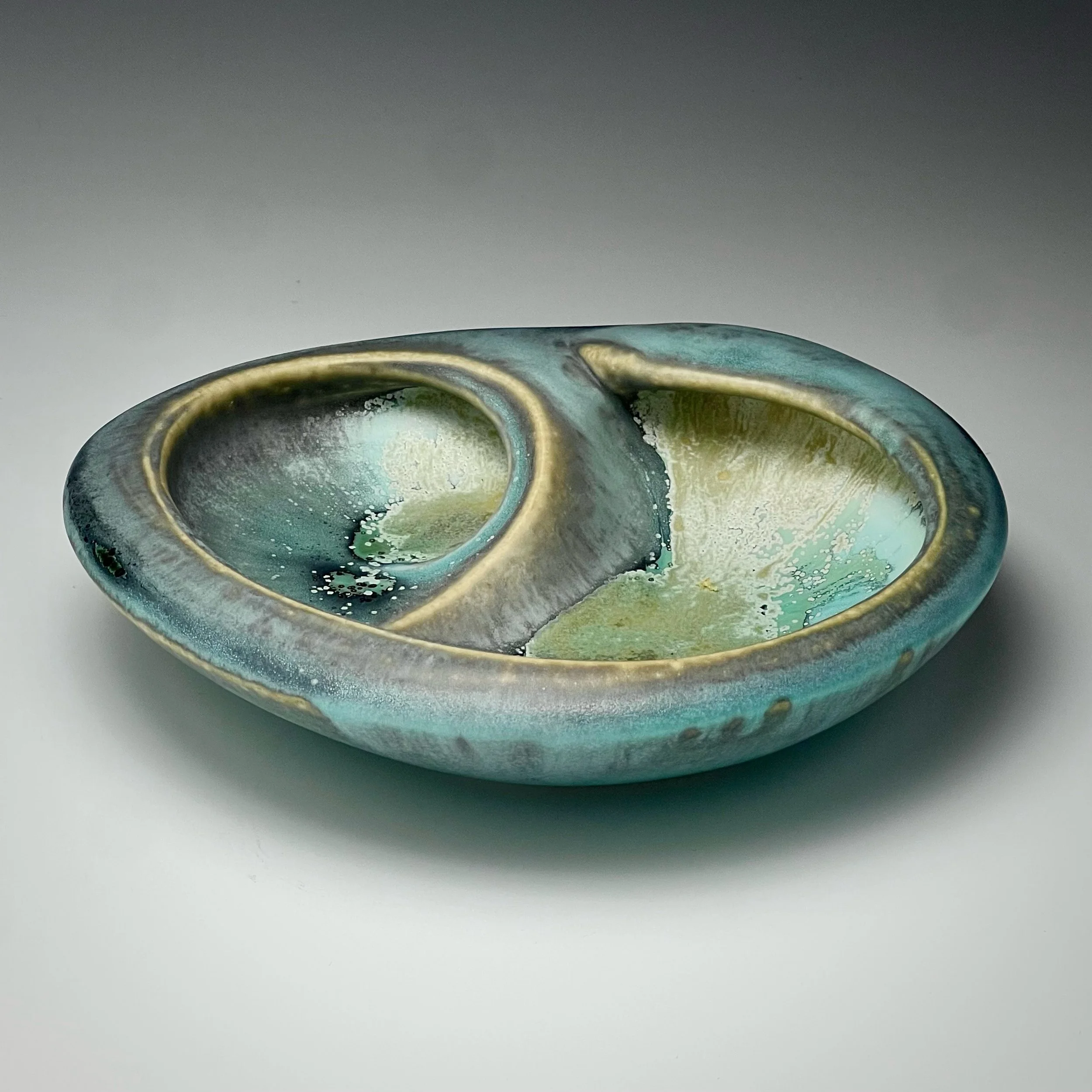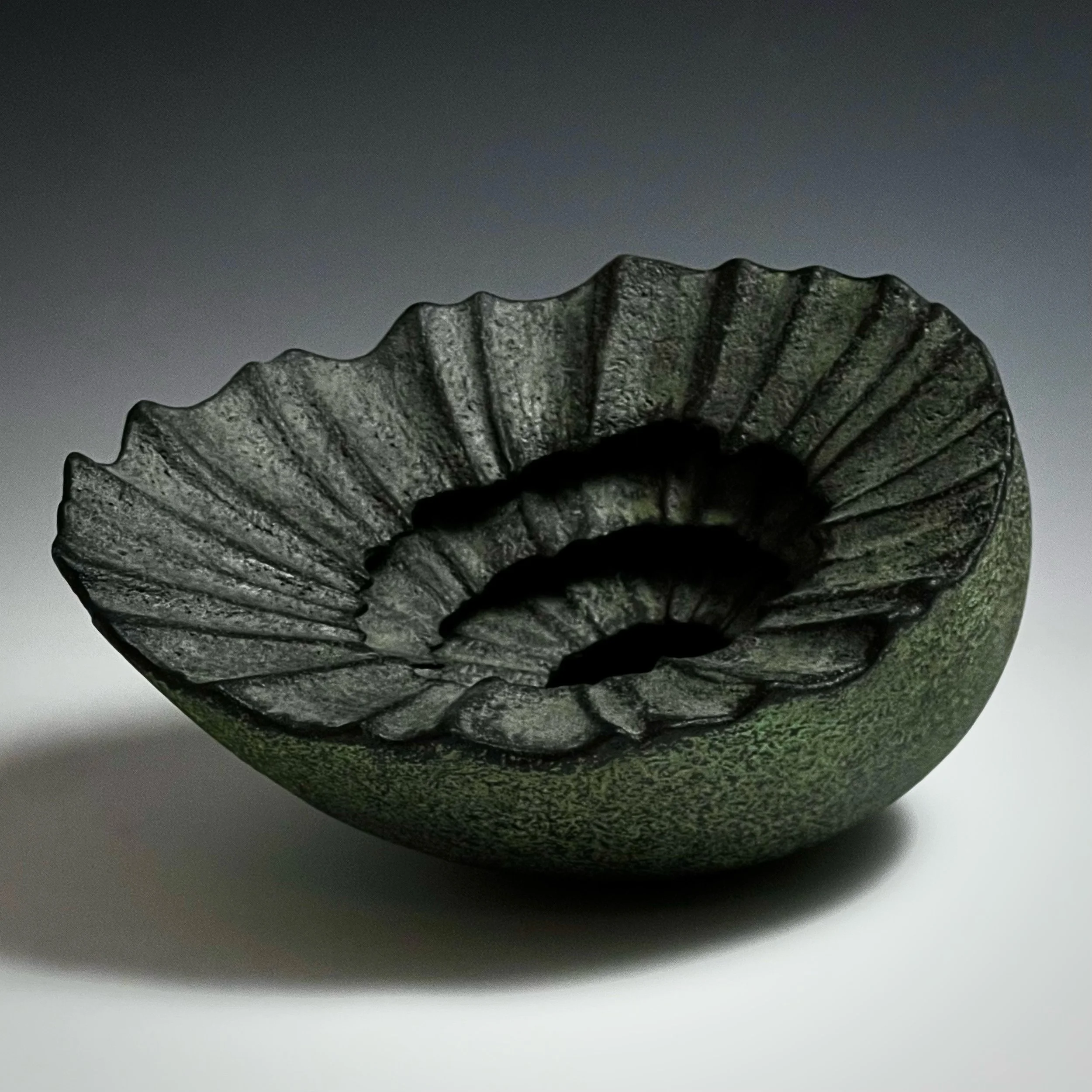 “Nearly everything I make has certain core themes in common. These include my fascination with how the forces of wind, water and erosion sculpt stone, my wonderment at the forms inside sea shells, my curiosity about the growth patterns of trees and plants, and my delight in the convolutions and articulations of bones. While I’ve spent much of my life working as a professional illustrator and designer, in my ceramics I rarely apply traditional decorative effects or graphic imagery, preferring instead to enliven my pieces primarily through form and sculptural gesture.”