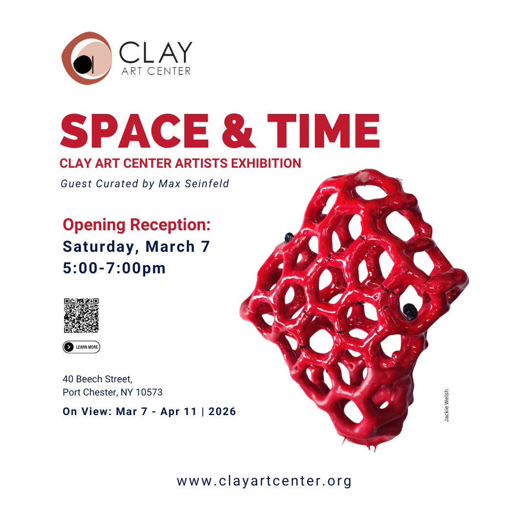 Clay Art Center is pleased to present Space & Time, an exhibition of functional and sculptural ceramics by Clay Art Center Artists. Guest-curated by past Artist-in-Residence Max Seinfeld, this exhibition explores the concepts of space and time as metaphors for lived experiences, as containers for memory, as real or imagined realms, and as narratives for the human condition.